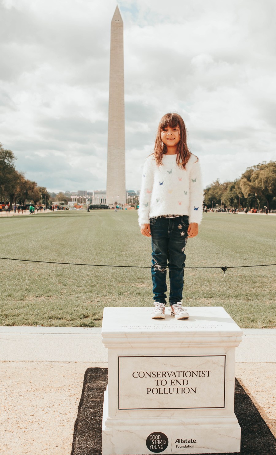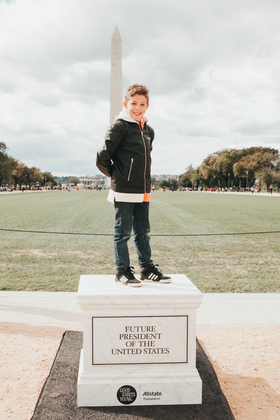 When we arrived at The Allstate Foundation event, we were greeted by pedestals that lined the national mall. Each pedestal featured an aspirational goal, engraved with inscriptions such as “Future President of the United States”. People were invited to stand on the ones they identified with. It was so neat! Our kids really enjoyed reading through the inscriptions and finding the ones they related to. It was such an amazing opportunity to talk with them about the future and how they could work towards that goal. Ways in which we could encourage, and empower them to follow this dream all the way through.