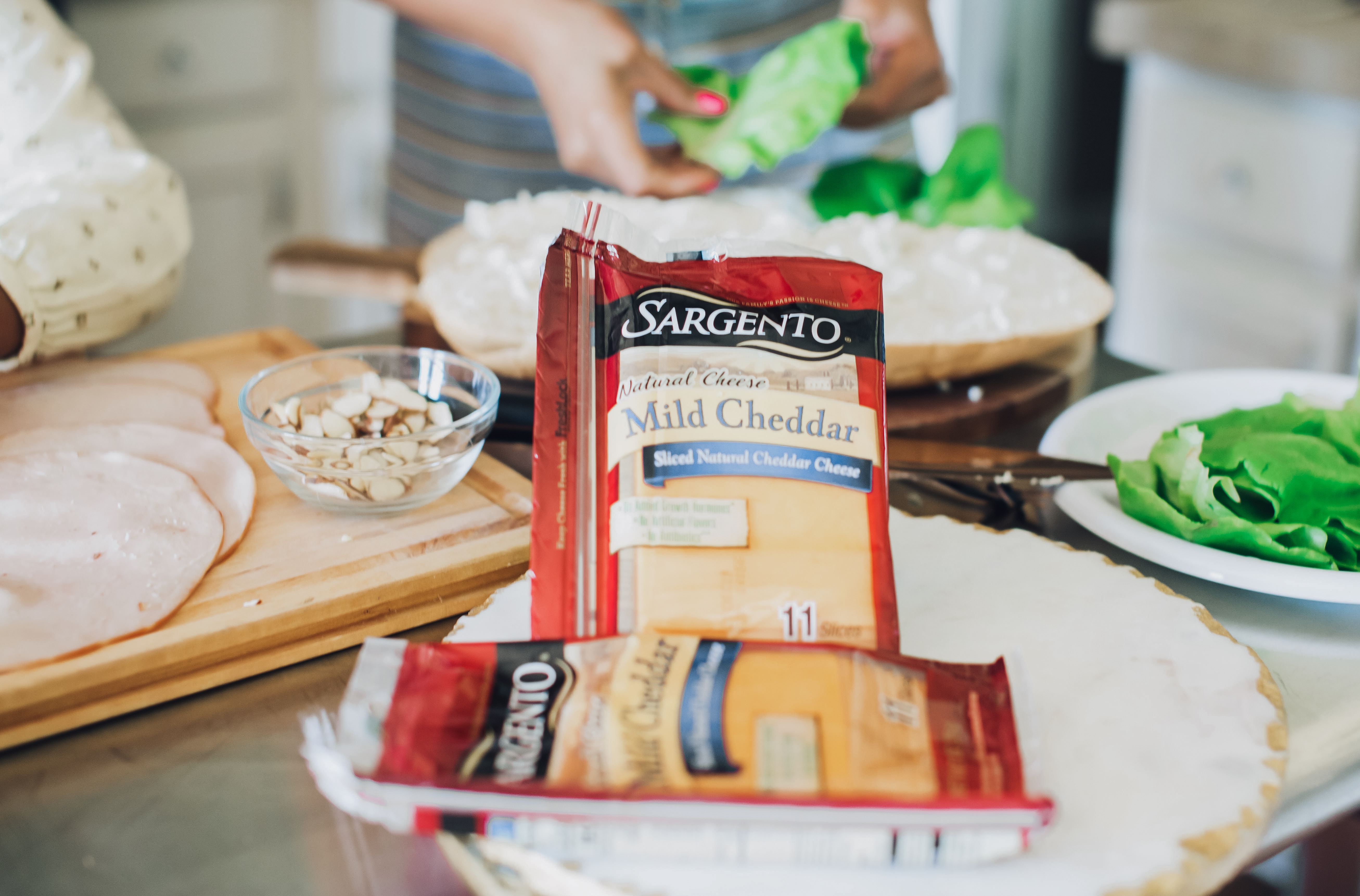 It’s important for me as a mom to have the kids eat natural cheese that is real and not processed. Also, in my opinion, it tastes so good! Which is why Sargento cheese slices are always our go to. We tried out a few ideas to revamp the traditional sandwich. I combined some organic lettuce, hand carved turkey, almond slices and artisan bread to create a pretty rad “alligator sandwich”.
