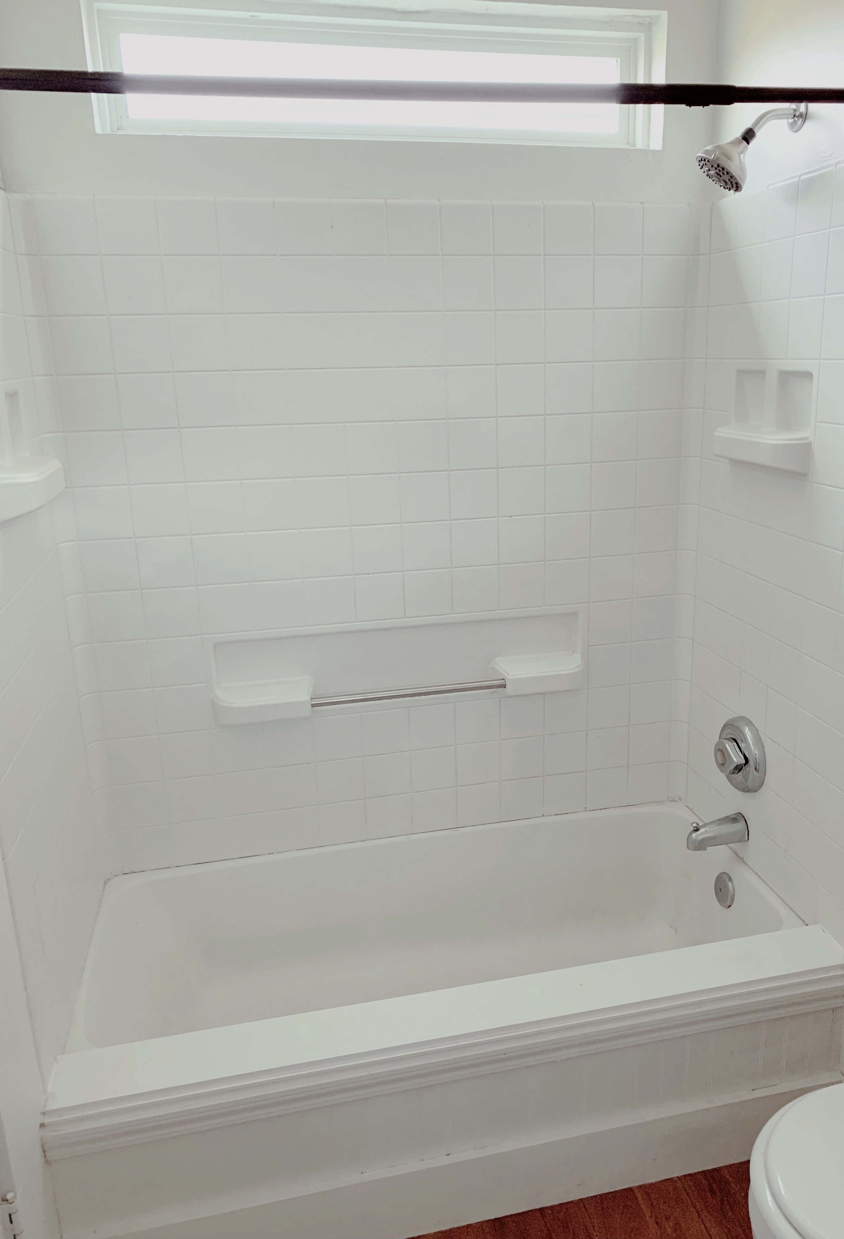 Years ago we tried to give our bathtub a face lift with a small DIY project. It was ok for a while, but it was never what we’d hoped for. It has always been so challenging making that space feel open and bright. I feel like thats my overall goal in our home- to make things feel functional without it looking outdated. Which is why we were on the search for something completely different and definitely more modern.