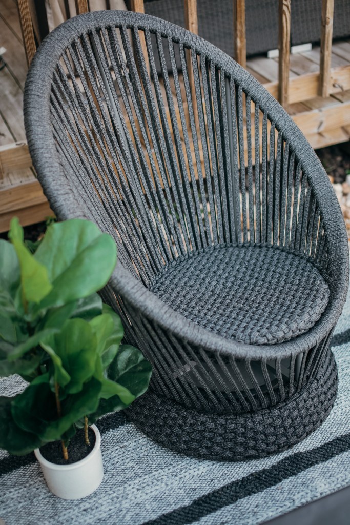 The reality of our backyard was less utopian than that. In fact, its been my least favorite space in our house. Raise your hand if you can relate! While we live on an acre, the space we have carved out for our deck and patio area is NOT very big. Main reason being the climate. On any given day we can get high wind gusts that drag our trampoline clear across our yard two houses down from us. Wish I was exaggerating. Having furniture that can withstand the weather has always been a challenge for us. Honestly, I had given up the idea of a dreamy backyard space. Which is why we kept a small space available for a patio. Something close to the house so whatever furniture we kept on it would not blow away.