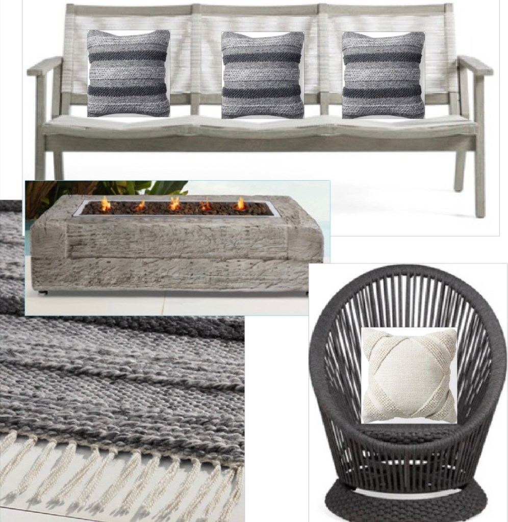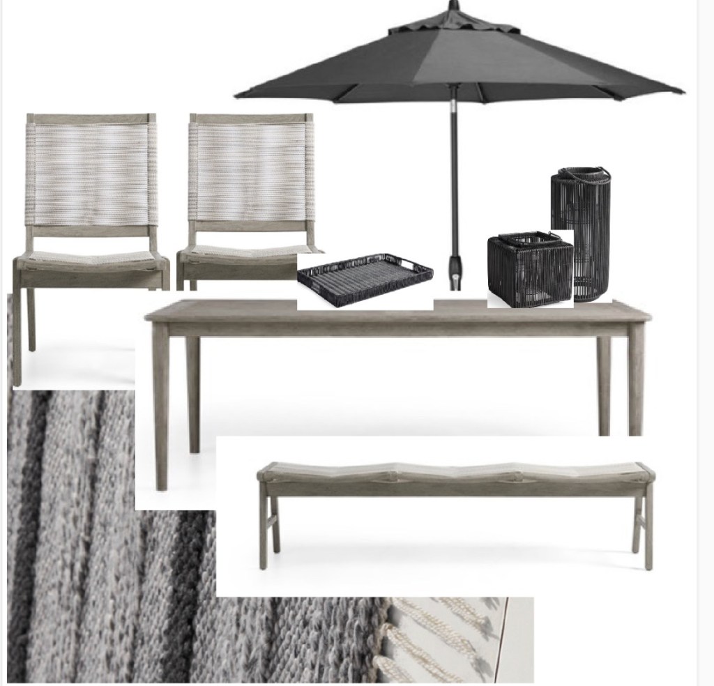 I met Donna Verdi via Arhaus. She is one of the many talented and gifted designers on the team. I love that we were able to jump on a quick phone call and discuss the vision for our patio. Donna wanted to know what expectations I had for that space, if I was interested in more seating or dinning, or even a blend of both. I felt an instant “she gets me” connection because Donna had taken the time to look over my interior aesthetic on Instagram to get an idea of my style. I mentioned the concerns I had regarding climate and needing sturdy pieces that would hold up well in unpredictable weather. Being Arhaus pieces, she assured me they were quality made items that would do exceptionally well, outdoors. From that conversation, Donna told me she would come up with a few mood boards and color palettes for me to choose from.