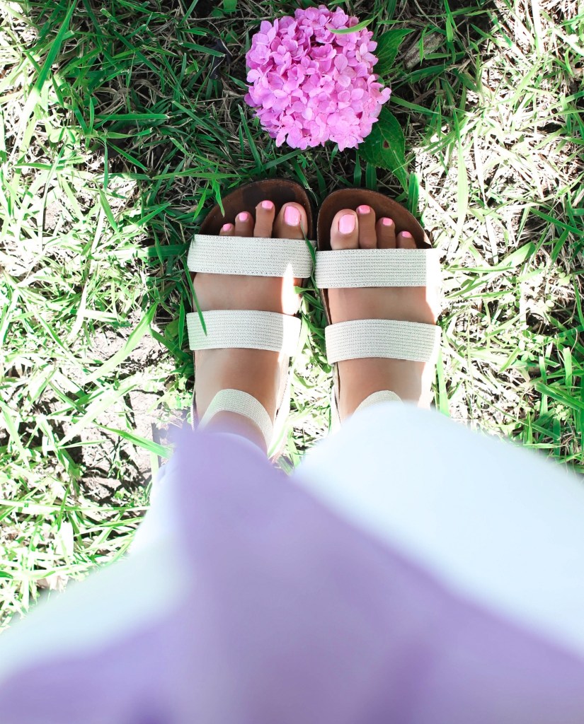 Any sandal that allows me to enjoy our cookouts on the deck and even do a little gardening is 100% my type. That’s exactly the kind of flexibility I look for. Did I mention the stretchy material is THE coolest?! So breathable and easy to walk in. I can bend down low and not feel a tug at my ankles which is really nice.