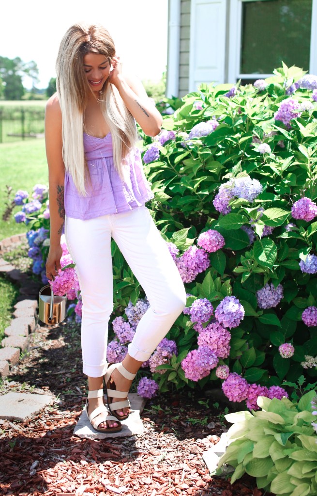 We’ve made it to summer, guys! I’ve been waiting for this season like no other. This is my favorite of them all. The sunshine, the porch hangouts with the fam, and it’s the time of year our hydrangeas are in full bloom. I had to get a few shots of these beauties because once high summer kicks into gear, they lose their color and get pretty crispy.