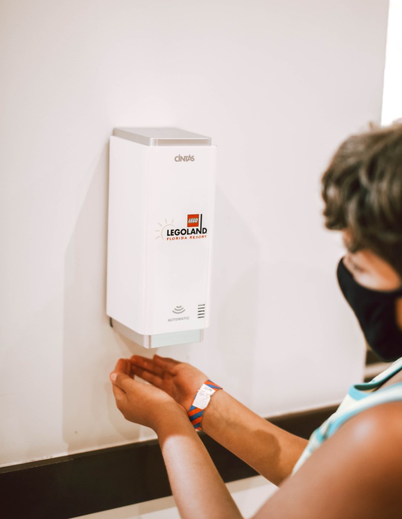 From the moment we walked in through the gates they were having our temperature taken and we were asked a series a questions to rule out any potential risks. Masks were required at all times at the park/ resort (with exception of dinning + water park play). Safe social distancing markers were located on the floor to indicate and maintain the appropriate 6ft distance from others. We noticed a ton of hand sanitizer stations available throughout the park and the resort. I especially appreciated the ones conveniently placed in front of the elevators!