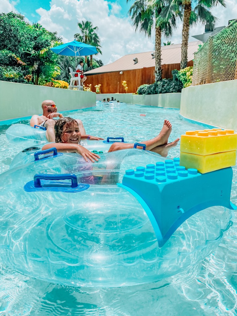 The build-a-raft lazy river is too fun! There are oversized LEGO pieces that float in the water for you to connect to your raft/inner tube and create.