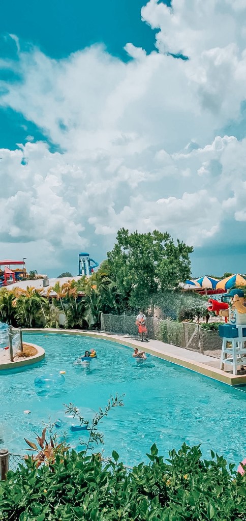 While we’ve been to the park side a bunch of times, we had never visited the water park addition. We were so excited to finally enjoy it! It was the perfect hot day for it too, but then again, it’s always the perfect time for water play in Florida, ha!