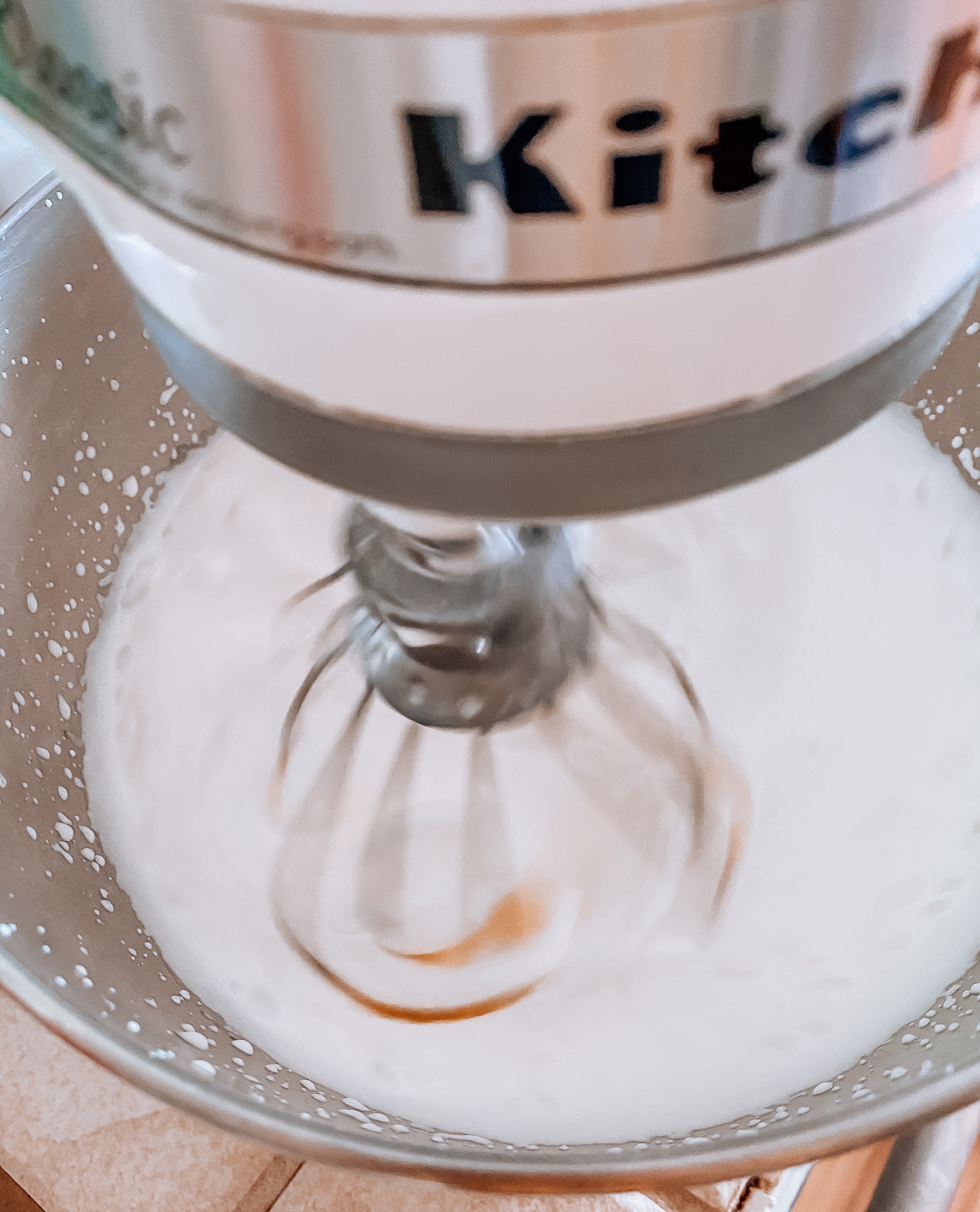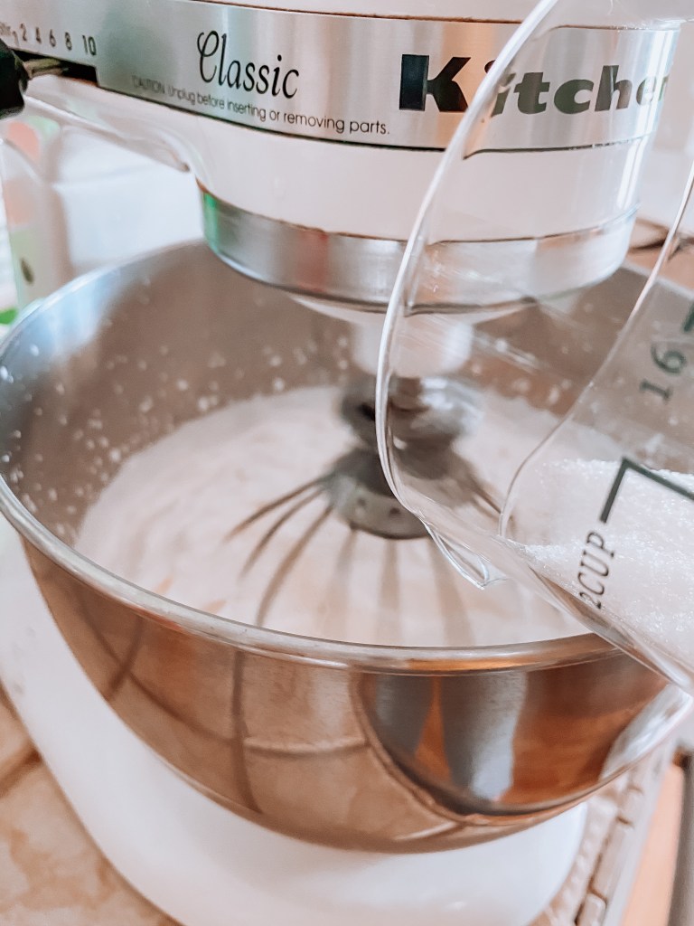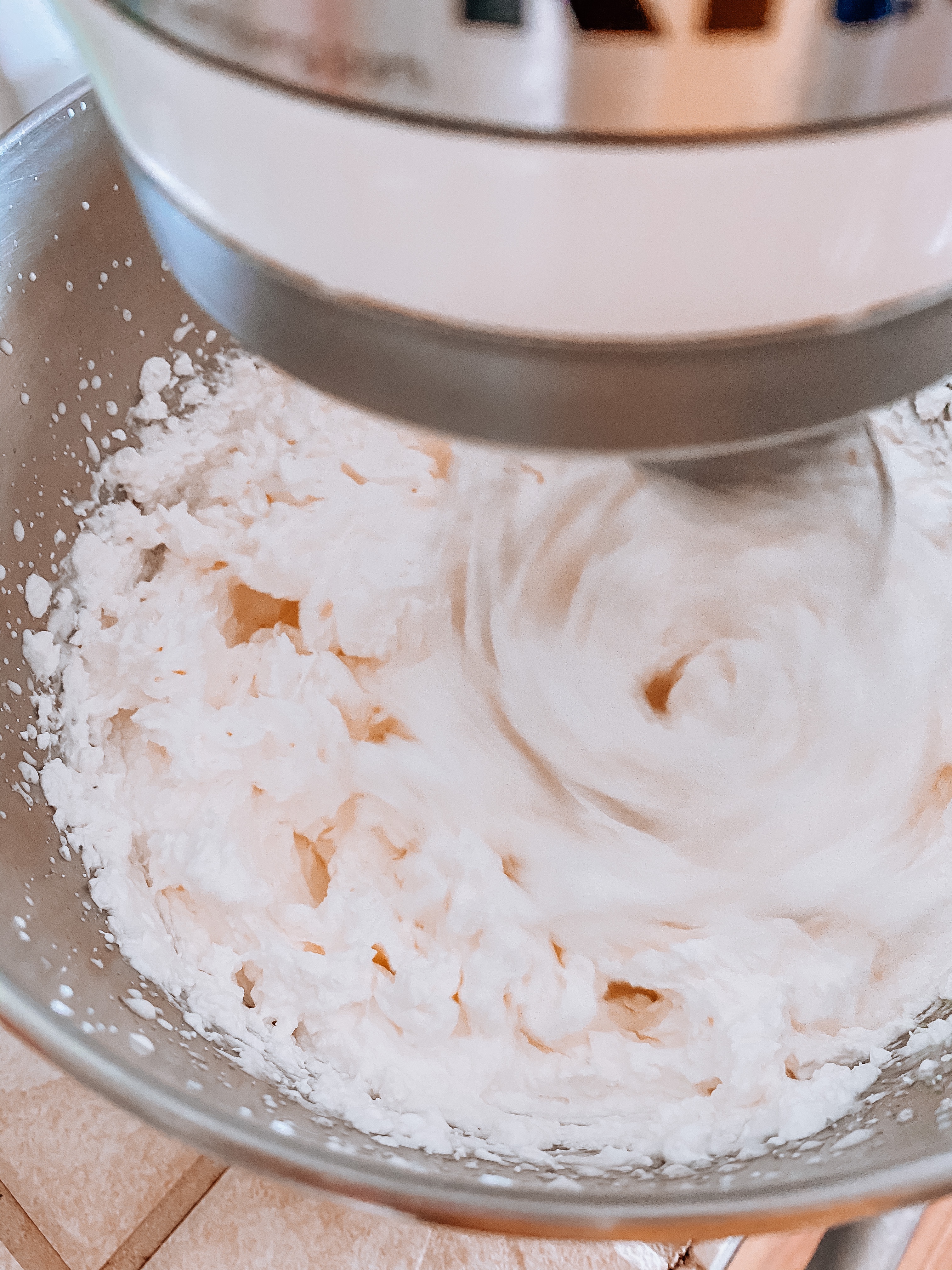 In a large mixing bowl, (I used my kitchen aid mixer) beat the heavy cream on high speed until it begins to thicken. Add the sugar one tablespoon at a time, and the add pure vanilla extract. Beat until the mixture is thick and spreadable. Mix about 3 minutes!