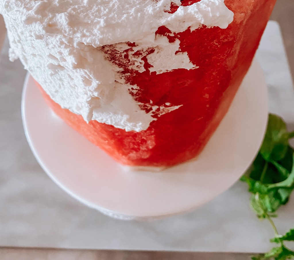 Just a little over a month ago, I saw a friend share a birthday party post in which she had made her daughter a watermelon cake. Not a watermelon flavored cake but an actual watermelon dressed up with the icing and “all the fixins” as we say in the south. I was stunned and also thought, why it never occurred to me to do the same?! I have a gluten free diet and coming up with new ways to enjoy desserts is my life’s work, ha! Anyway, after tons of research (not really, it’s not rocket science), and a few adaptions… I have THE easiest recipe to this fun concoction! Make sure to try this before watermelon season is over, you won’t be sorry!
