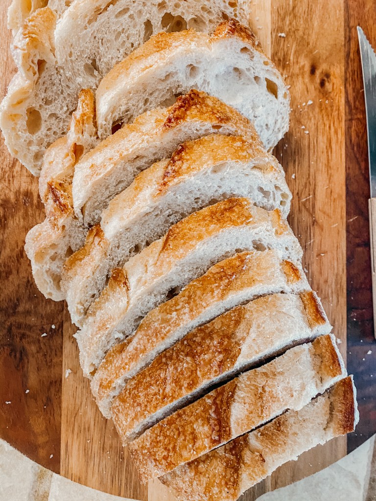 So, I make yummy and savory (medium sized sandwiches) for lunch. I start off with a nice sourdough loaf. Slice 1-2 inches in thickness and load them up with their favorite deli meats and cheeses.