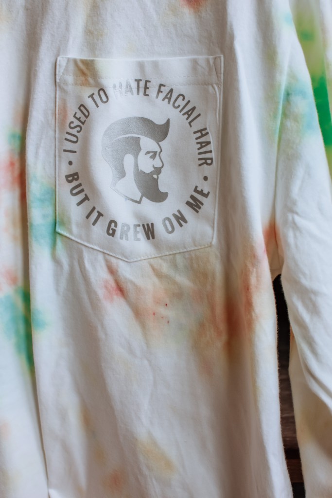 The kids wanted to make dad a “surfer” t-shirt, so before we started on our graphic, we prepped our white long sleeve top by adding some tie dye.