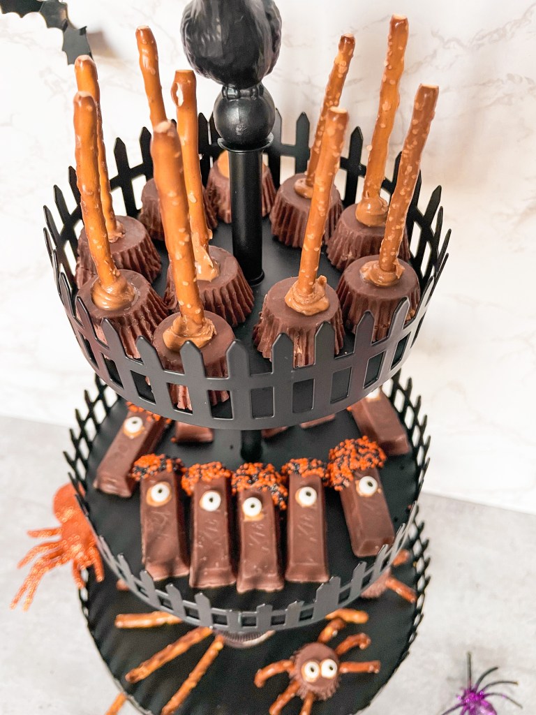 Witches broom = one Reese cup/ one pretzel stick/ a dab of peanut butter.