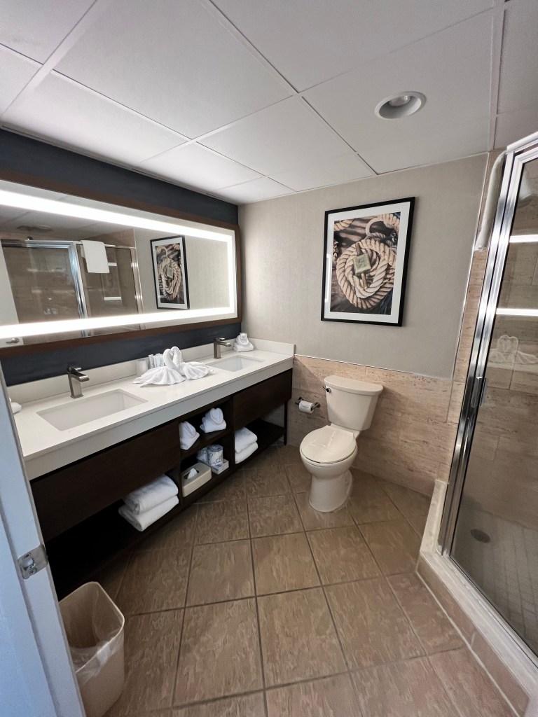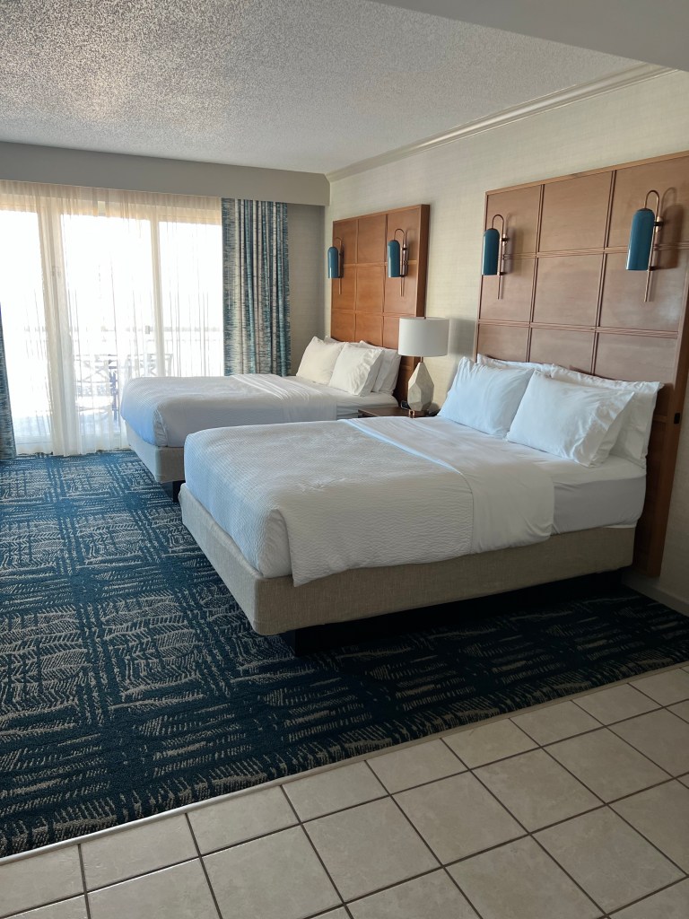 After the museum we headed to our hotel for an early check in. When I tell you this hotel took our breath away, it totally did. The Holiday Inn Hotel and Suites Ocean City is spectacular! Clear view of the ocean right from our balcony. Our room was incredibly spacious with a living room/ dining area, full kitchen, bathroom with waterfall shower head, naked tub in the master bedroom and sit down balcony area. Just amazing!