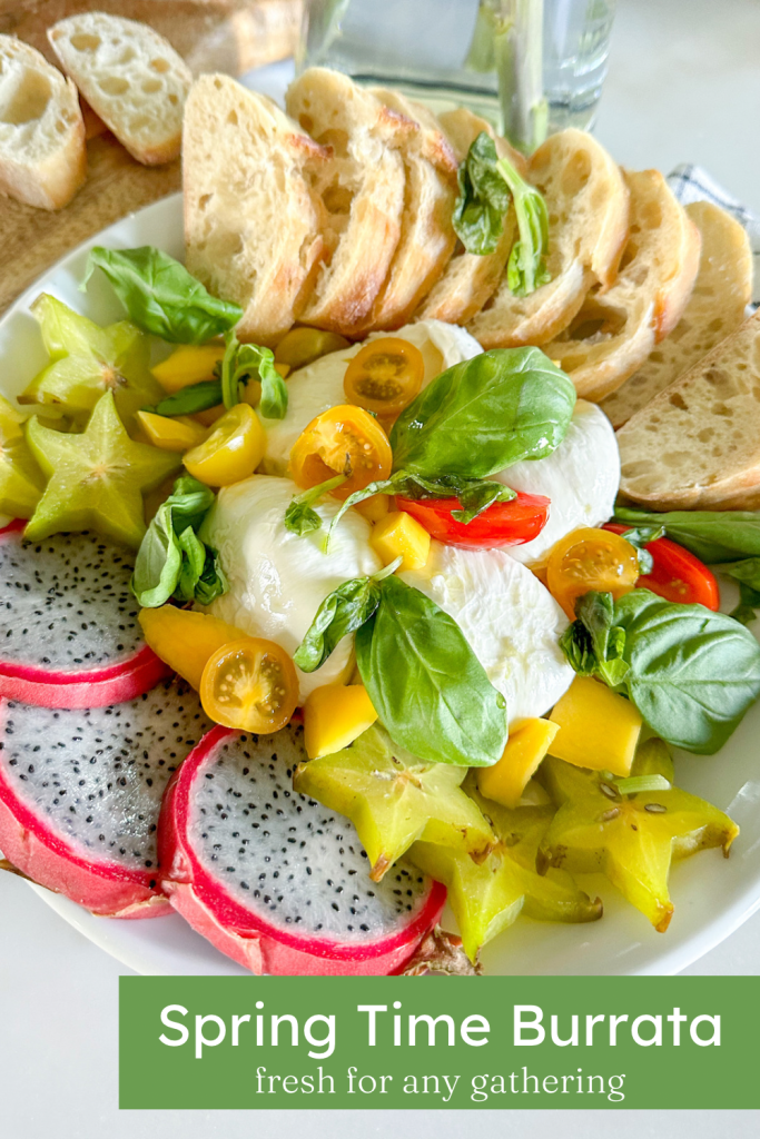 What’s more delicious than a plate of Burrata with fresh fruit and warm French bread? I can’t think of anything else! This is one of my favorite ways to enjoy Burrata- call it a pregnancy crave (surprise, I’m expecting) because of the sweet and tart combo of the fruit. Let me show you just how easy it is to prep this plate for your next gathering or to graze at home.