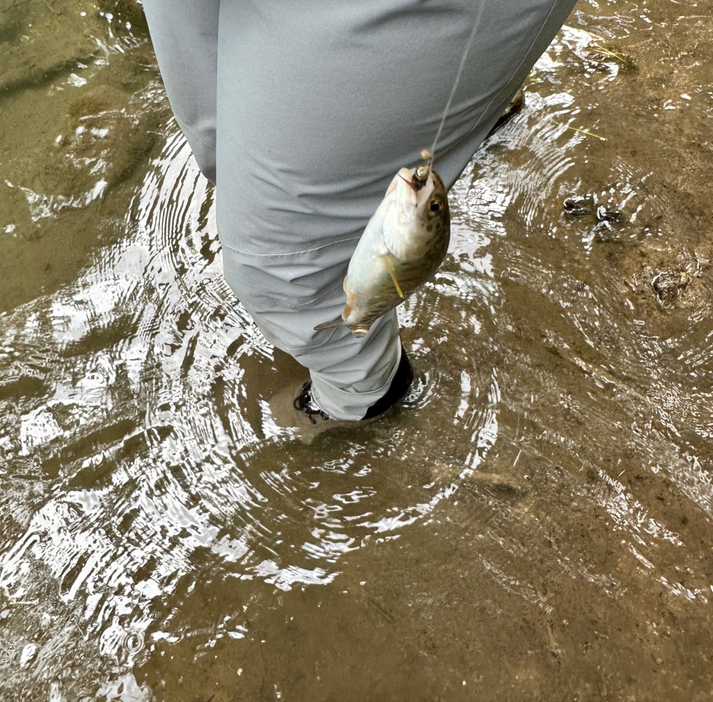 Our first spot to try and catch some fish was down by a river that was fully stocked with rainbow trout. Guess what?? I was the first to catch one! It was a tiny one, but hey, it counts.