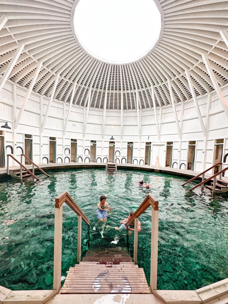 I was asked about the depth of the springs and it’s close to 6 ft, but there are stones at the bottom that make it feel more like 5 feet. Plus, there are pool noodle’s available as well. It was such a relaxing way to end our trip and make the drive home. I hear it’s even more beautiful in the winter when it snows and you can see the snow cascading through the top opening.