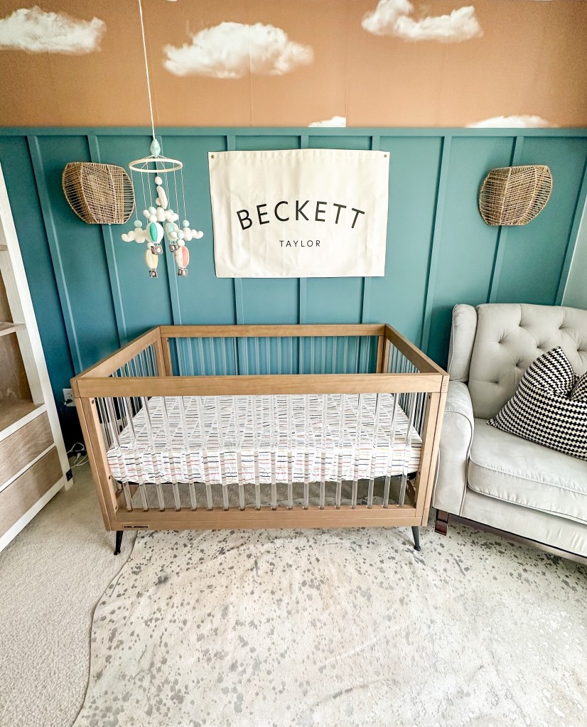 Beckett’s nursery theme is “in the clouds”, since he’s heaven sent. I wanted to incorporate some fun hot air balloon elements without it feeling too over the top. Again, I was REALLY trying to channel a minimalist, ha. I will share a detailed list of where to find items at the end of this post!
