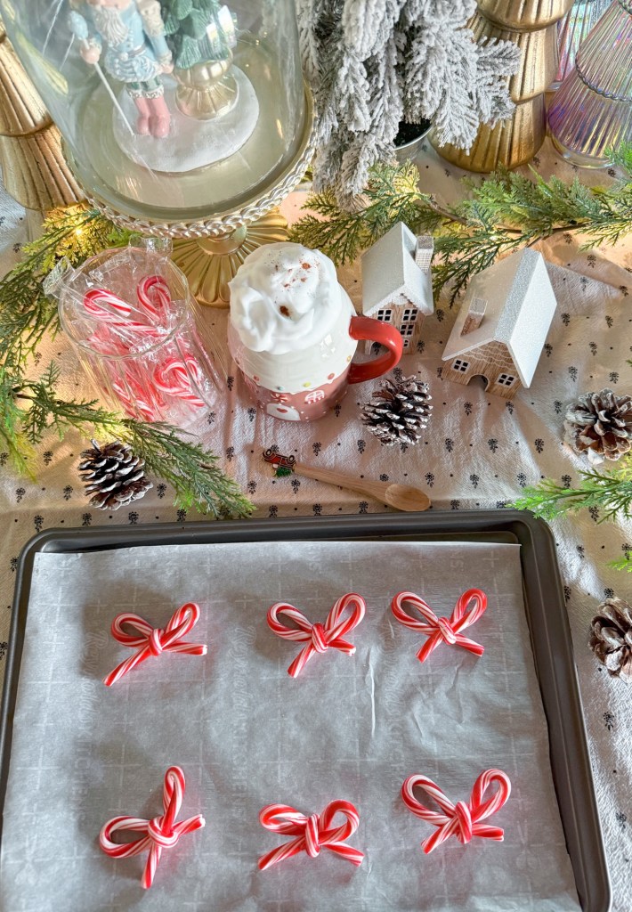 ✨ Arrange two mini candy canes(hooks facing in) to criss cross each other