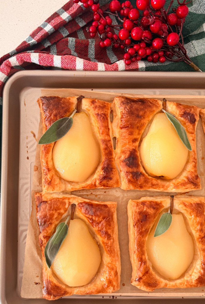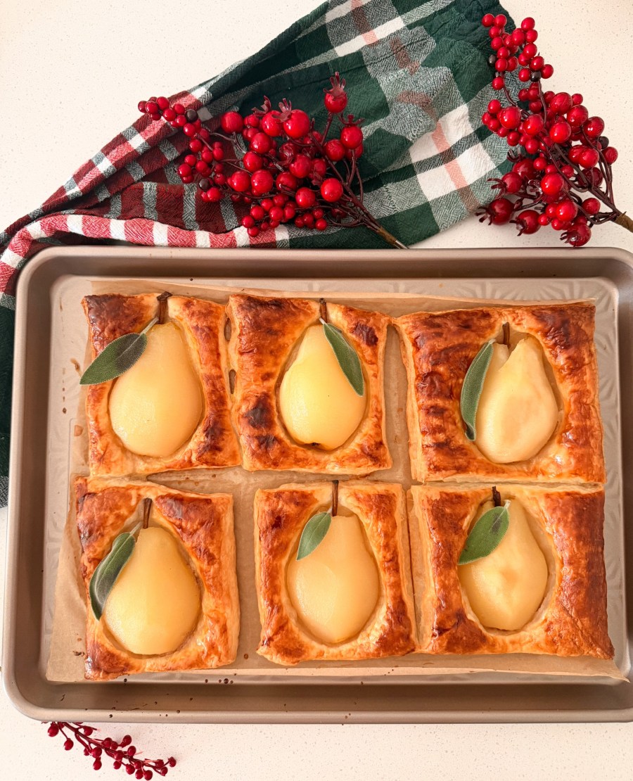 Tender poached pears, a creamy almond filling, and buttery puff pastry come together in this elegant yet approachable dessert. Lightly glazed with a spiced citrus syrup, these pastries feel special enough for entertaining but simple enough to make at home.